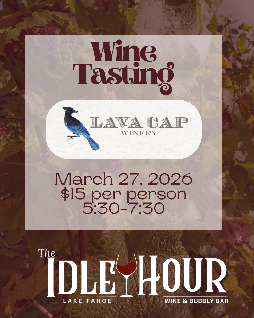 Join us at The Idle Hour Lake Tahoe for an evening of Sierra Foothills wine featuring Lava Cap Winery on March 27 at 5:30 PM. Nestled high in the Sierra […]